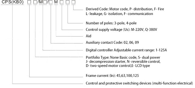 KB0 namely "Control and protection of electrical switches CPS" is a new type of low-voltage electrical products, is the latest development of the nineties to fill the gaps of the first generation of categories of products, as a new category of products, its product category, code-named " KB0 ", the English" Confrol and Protective Switching Device "acronym, it meets the standards IEC60947-6-2 (1997)" Low-voltage switchgear and control equipment Part 6: Multiple function equipment Section 2: Control and protective switching Electric CPS "(1992 年 8 first edition) and GB14048.9-1998" low-voltage switchgear and control equipment multifunction devices (or equipment) - Part 2: Control and protective switching CPS (device) "(identical with IEC60947- 6-2).