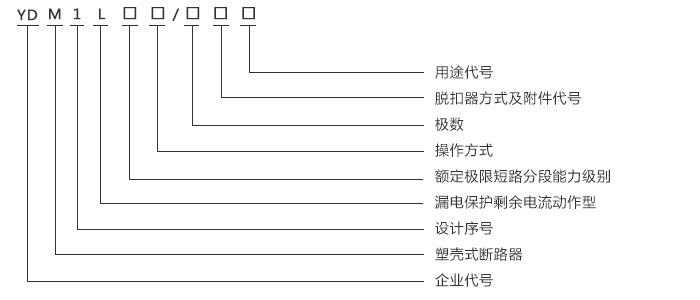 产品型号和名称:如TXM1L-400(CM1L塑壳断路器)/ YDM1-150塑壳漏电断路器 瞬时脱扣额定电流:如400A。