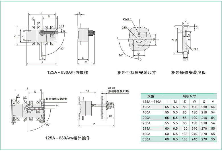 | 约定发热电流(A) | 125 | 160 | 200 | 250 | 315 | 400 | 630 | |
