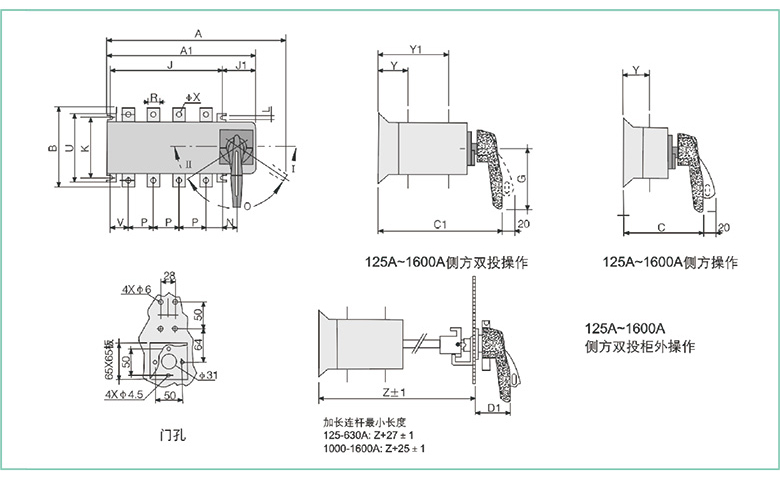 | 电流 | A | A1 | B | C | C1 | D1 | J | K | L | N | P | R | U | V | X | Y | Y1 | Z |