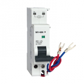 过压脱扣器 MV 230V 过压值Uvo=270V±5% 当电源电压上升到270V±5%之间时,使断路器脱扣,实现线路的过电压保护。